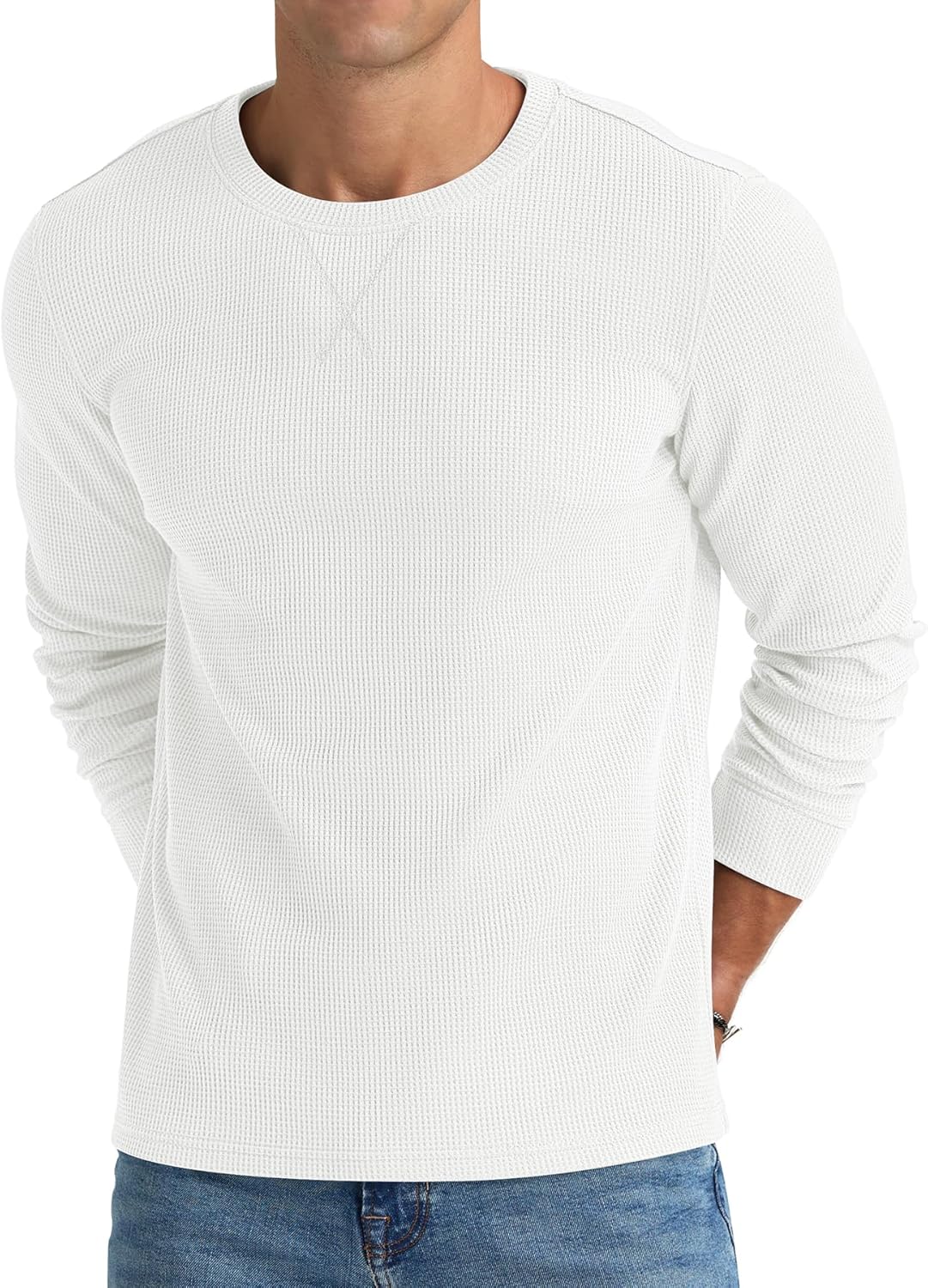 - This crewneck t-shirts features with waffle pattern, long sleeve, slim fit, crewneck, the “X” stitching design under the collar, durable stitching on cuffs, shoulders and hem, premium waffle fabric. The neckline provides a comfortable fit and enhances the overall look of the shirt, lending a neat sense of texture to your line-up.